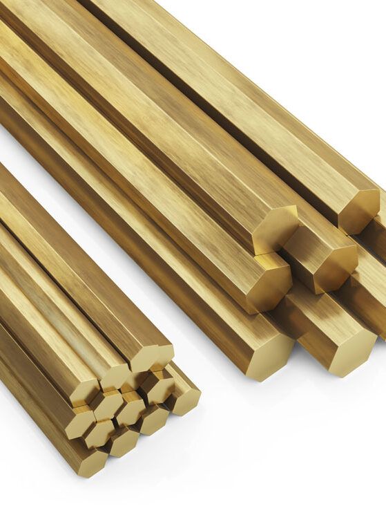 - ششپهلو سربدار (Free-Cutting Hexagon Brass Bar): آلیاژ C36000 – عالی برای ماشینکاری سریع، رزوهزنی و تولید انبوه پیچ و مهره